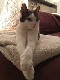 Na acht weken was hij 700 gram kwijt en tot op de dag van vandaag heeft hij dit gewicht behouden. Onze voorheen "niet dikke kat" kan nu "sportief" worden genoemd. Ik denk dat hij het gewoon goed doet! Hij doet bijna alles voor de zalmhapjes - dat is ons nr. 1 "clickerhulpmiddel".