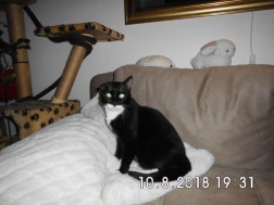 Wendy, 12 jaar oud, werd in beslag genomen uit een Messi-gezin en een jaar lang ondergebracht in het kattenasiel van Mon Ro Ranch. Daar kreeg ze natvoer en droogvoer aangeboden (allerlei donaties). Maar ze at alleen droogvoer. Ze at ook niet goed en hield niet van eten (zonder eetlust). Op 07.10.2018 mocht ik haar in opvang nemen. Ik kreeg zowel droogvoer (I'm Bella beautiful - rijk aan kip met anti - haarbal en voor soepele huid en glanzende vacht als Kitty's Cuisine, Adult, Rindliebe met hartig rundvlees, granaatappel en acai bessen, die ze op dat moment hadden, mee naar huis voor haar. Ze at ongeveer 50 g van beide smaken gemengd in 3 maaltijden per dag. Dat was veel, want ze voelde zich op haar gemak in haar nieuwe thuis.
